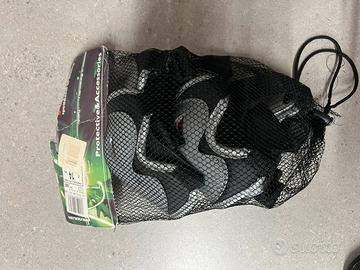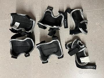 Set di protezioni complete per gomiti, ginocchia e polsiere taglia junior in buone condizioni. Perfette per chi inizia ad andare in bicicletta o parttini