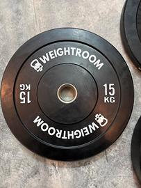 Vendo set completo di dischi bumper gommati nuovi di zecca, mai utilizzati, perfetti per palestra, home gym, CrossFit e sollevamento pesi.