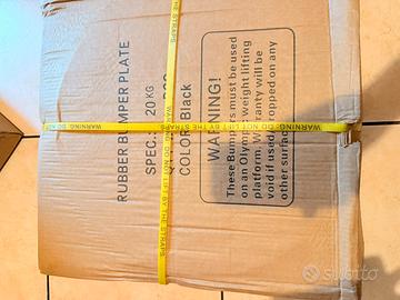 Vendo dischi in gomma foro olimpico 50mm e bilanciere olimpico 220cm – 20kg (colorati, rimasti rosso e giallo).