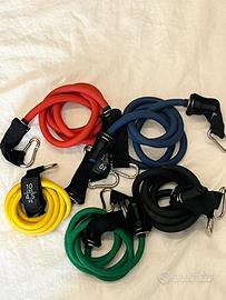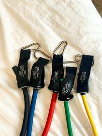 Vendo set di elastici da allenamento usato pochissimo, perfetto per allenamenti a corpo libero, forza e tonificazione, ovunque tu sia. Il set include: ✅ 5 elastici con resistenze progressive: da 4,5 kg fino a 22,5 kg, combinabili tra loro per creare l'intensità perfetta per ogni esercizio v 2 maniglie antiscivolo per una presa sicura e confortevole ✅ 2 cavigliere regolabili ✅ Gancio per ancoraggio alla porta. + sacca per trasportare il tutto E Allenamento full body: petto, braccia, gambe, glutei, schiena e addome Leggerissimo e portatile: perfetto per casa, vacanze o allenamenti outdoor ©️* Adatto a tutti: principianti, intermedi e atleti!