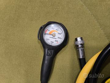 Vendo set completo per subacquea Scubapro, configurazione classica e robusta, ideale per chi cerca un'attrezzatura di qualità superiore rispetto ai modelli entry-level. Cosa include il kit: - Primo Stadio Scubapro MK11: Bilanciato a membrana, perfetto per immersioni in acque temperate e ottimo per chi viaggia grazie alla sua compattezza. - Erogatore Principale Scubapro R095: Semplice, affidabile e di facile respirazione. - Octopus (Emergenza) Scubapro R095: Colore giallo alta visibilità con frusta lunga. - Manometro: Analogico professionale. Frusta GAV: Inclusa e già collegata. Stato e Manutenzione: L'attrezzatura è stata utilizzata solo per poche immersioni subito dopo l'ultima revisione completa. Tuttavia, essendo rimasta ferma per qualche tempo, viene venduta da revisionare nuovamente per garantire la massima sicurezza in acqua (scadenza temporale della revisione superata). Condizioni estetiche: Eccellenti con qualche segno di normale usura. Conservazione: Sempre lavato con cura in acqua dolce dopo l'uso e conservato al riparo da luce e umidità. Trasparenza: Il prezzo tiene già conto della necessità di effettuare la revisione prima dell'utilizzo. Dettagli Tecnici: - Attacco DIN Consegna a mano o spedizione da concordare.
