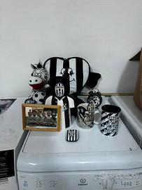 Sono presenti due pupazzi stile juve, una polsiera, un porta penne, una spilla, una molletta, una tazza, una sveglia e La fotografia ritrae una formazione storica dei giocatori della squadra negli anni '80.