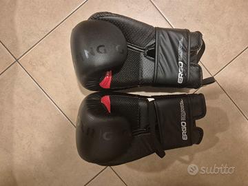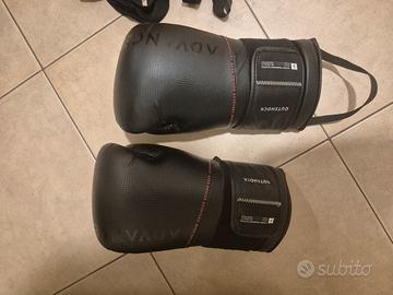 Set di protezioni per arti marziali composto da parastinchi, guantoni, fasce. Taglia L/12oz, comprensivo di 2 tappetini marca Decathlon con confezione originale intatta.