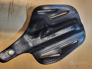 Modello:Pancake a 3 asole (marchio CR Handmade Holster). (permette il porto in posizione verticale o inclinata "cross-draw").