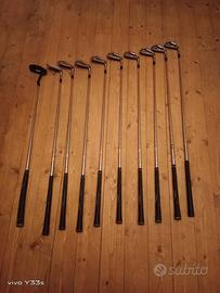 Serie ferri Mizuno T-ZOID MX-15 dal n° 3 al SW in acciaio dx + putter + sacca a spalla Meridiana il tutto usato poco ed in buono stato. Da ritirare in loco (Prov. di Bergamo).