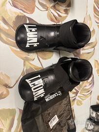 Vendo set per kick boxing LEONE cosi composto: - 2 guantoni 10 oz; - 2 para stinchi; - 2 protezioni per i piedi; - 4 fasce per polsi (mai usate) Il set presenta qualche segno di usura ma nulla che ne pregiudica l’utilizzo… Ottimo set completo per iniziare questo sport…