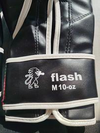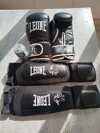 Set Kickboxing, composto da: GUANTONI LEONE 1947, Flash da Boxe, Unisex E’ un guanto semplice e funzionale, con imbottitura pre-formata e chiusura in velcro Nero, Taglia 10 ozM PARATIBIA DEFENDER Imbottitura: 75% EVA, 25% PU - Materiale: PU/PA/PL Chiusura: Velcro - Colore: nero BENDE DA 3,5 metri bendaggio semi-elastico grigio, per il comfort e la protezione totale del polso e delle articolazioni della mano. Chiusura con velcro. permettono un giusto bendaggio attorno al polso e alle nocche. € 40