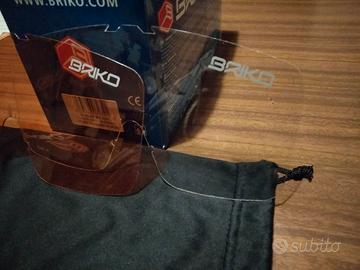 Kit lenti di ricambio per maschera da sci Briko Super Race Thrama composto da lente doppia da sole anti appannamento, lente singola trasparente e lente singola arancione per condizioni di nebbia. Il tutto pari al nuovo