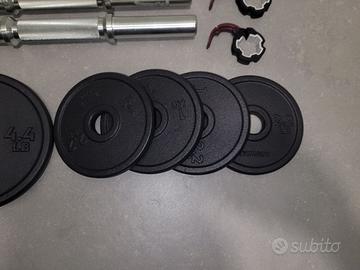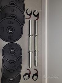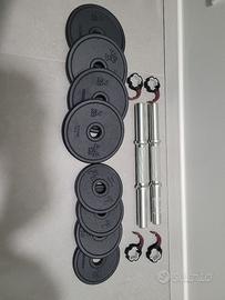 Vendo set manubri Decathlon completo con pesi in ghisa, ideale per allenamento a casa (home gym). Composizione: - 2 manubri in acciaio (2kg) - 4 dischi da 2 kg - 4 dischi da 1 kg - 4 chiusure rapide Peso totale: 16 kg Caratteristiche: - Dischi in ghisa robusti - Chiusure rapide per cambio peso veloce - Impugnatura solida e comoda Condizioni: Ottime, perfettamente funzionanti Consegna: Solo ritiro a mano zona Chiuduno (BG), no spedizione Prezzo: 40€ leggermente trattabili