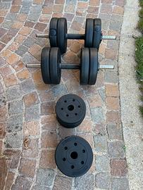 Vendo set manubri 30 kg come nuovo, usati solo una volta. Dischi rivestiti in materiale plastico.