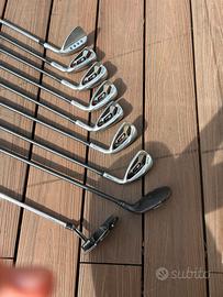 Vendo set di mazze da golf PING G410, usate per circa 1 anno e mantenute in buone condizioni. Il set comprende: •Ferri: 3, 5, 6, 7, 8, 9 •Wedge (W) •Putter •Inclusi anche legni (come da foto) Le mazze presentano normali segni di utilizzo, ma sono perfettamente funzionanti e ancora molto performanti. Shaft e grip in buono stato. Shaft PING Alta CB Regular (R), ideale per la maggior parte dei giocatori.” La serie PING G410 è conosciuta per essere molto tollerante e facile da giocare, ideale sia per principianti che per giocatori intermedi che vogliono migliorare il proprio gioco.