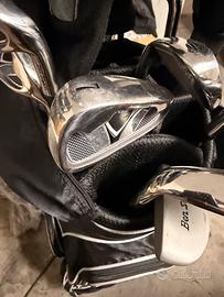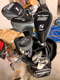 Vendo set completo mazze da golf Ben Sayers M5 (modello classico britannico), ideale per principianti/intermedi. Include driver MS1.5 (10.5°), fairway M5 (20°), irons (da 5-PW circa con Nike-like heads), putter Ben Sayers, borsa stand Ben Sayers honeycomb nera con tasche multiple e supporto (eccellente).