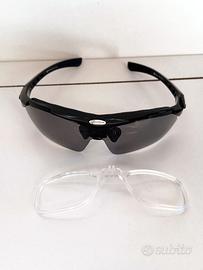 Vendo kit completo nuovo, mai usato, con imballo originale, occhiale sportivo a lenti intercambiabili. Il kit è composto da: montatura di colore nero, clip interna per eventuali lenti correttive da vista, n° 05 lenti a mascherina (trasparente, gialla, azzurra, fumè, scura), cordino da collo, fascia elastica da testa, custodia rigida imbottita con cerniera e gancio a moschettone. Richiesta Euro 25.00.