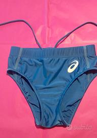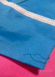 set composto da 5 pezzi ufficiale della nazionale italiana di atletica leggera prodotto da Asics... femminile - maglia tecnica mezza manica con zip parziale frontale - canotta da gara classica - top corto modello crop - slip da gara con elastico in vita - bermuda corto con piccola scucitura localizzata e l'etichetta interna sbiadita - in materiale tecnico traspirante