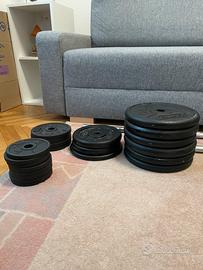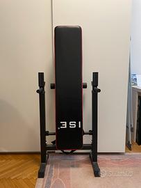 Vendo per inutilizzo set palestra completo per home gym in ottime condizioni. Ideale per allenamento full body direttamente a casa. Il set include: - Panca piana ISE robusta e stabile - Supporto/rack per bilanciere - Bilanciere lungo - Barra EZ (curl) - 2 manubri componibili - Dischi in ghisa per un totale di 91 kg - Collari e chiusure ferma pesi Ritiro in loco a Trieste (no spedizione vista la dimensione e il peso). Disponibile per ulteriori foto/info.