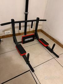 - Panca regolabile in tre posizioni con bilanciere e utilizzabile per allenare gambe