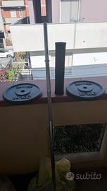 Vendo per inutilizzo attrezzatura da palestra a marchio Domyos, solida e perfettamente funzionale. Kit ideale per allenamento pesi serio (Squat, Stacchi, Braccia) in casa. Il blocco comprende: 1.Rack Domyos 500: Coppia di cavalletti indipendenti e regolabili in altezza. Includono supporti di sicurezza e perni portapesi laterali. 2.Bilanciere Dritto (28mm): Lunghezza 1,55m con impugnatura godronata. 3.Triceps Bar (Cornice): Bilanciere specifico per bicipiti e tricipiti (presa hammer). 4.20kg di Ghisa: 2 dischi da 10kg l'uno (alcuni fisiologici segni di ruggine superficiale, strutturalmente perfetti). 5.Accessori: 2 collari fermapesi Smart Stop e Squat Pad (imbottitura bilanciere). ATTENZIONE: Panca e cinghie TRX visibili in foto NON sono in vendita. Condizioni: Materiale strutturalmente perfetto, solo un po' di polvere da inutilizzo. Prezzo: €190 (trattabili se ritiri tutto il blocco). 📍 Ritiro: Solo consegna a mano a Locate di Triulzi. Non effettuo spedizioni.