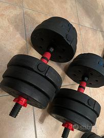 Set panca piana sports tech con una coppia di manubri componibili con dischi, 4 dischi da 2,5kg 4 dischi da 2kg 4 dischi da 1,5kg 4 dischi da 1,25 kg