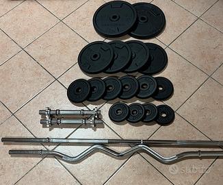 Vendo set completo di dischi in ghisa + bilanciere dritto + bilanciere curl + manubri, ideali per home gym.