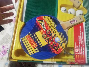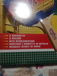 Set da ping pong nuovo senza cartellino, scatola originale, set composto da 2 racchette, 3 palline, rete regolamentare, istruzioni e regole di gioco, sostegno e morsetti in metallo