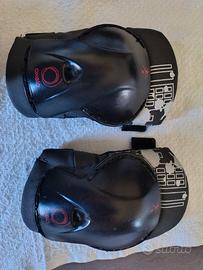 Set completo di ginocchiere, polsiere e gomitiere per il pattinaggio a rotelle di colore nero e rosso con chiusura in velcro. Taglia XS (erano abbinate a dei pattini numero 34-36). Set completo di custodia