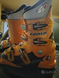vendo sci ROSSIGNOL JR RADICAL 130 scarponi coordinati ROSSIGNOL misura 23.5 (misura scarpa EUR 36-38) racchette coordinate regalo casco BRIKO bianco