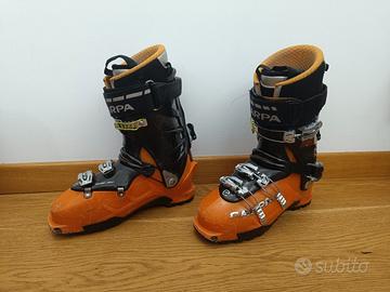 Set SkiAlp K2 Wayback 88 (181cm) + Dynafit TLT Speed Turn 2.0 + Pelli e Rampanti + Scarpa Maestrale 280 Sci: K2 Wayback 88, lunghezza 181 cm, uno sci versatile ed equilibrato tra salita e discesa. Condizioni buone, fondo e lamine con normale usura da utilizzo (manutenzione regolare). Attacchi: Dynafit TLT Speed Turn 2.0 (modello ultraleggero). Massima affidabilità e peso minimo. Nota: Attualmente montati per uno scarpone misura interna 280 mm, scafo 314mm. Pelli: Sagomate su misura, con buona tenuta. Accessori: Rampanti (coltelli) originali Dynafit inclusi. Scarponi: Scarpa Maestrale arancioni, misura interna 280mm, scafo 314mm, molto usati, vedi nota a seguire. Stato del materiale: L’attrezzatura ha circa 10 anni con un utilizzo medio. È stata conservata con cura, ma presenta i normali segni estetici dovuti all'attività in montagna. Le pelli potrebbero richiedere un rinnovo della colla a breve termine. Scarpone con un gancino della sovrasoletta mancante, ma perfettamente funzionante.