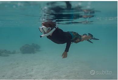 SET SNORKELING COMPLETO PER BAMBINI 2-7 Anni - Il set CRESSI Seashell Seekers è progettato per bambini che vogliono scoprire lo snorkeling, include maschera snorkeling, boccaglio ergonomico e pinne corte adatte per piscina e mare MASCHERA SUBACQUEA CON LENTI ANTI-APPANNAMENTO - La maschera subacquea per bambini è dotata di lenti in vetro temperato con trattamento anti-fog e cinturino regolabile con fibbie laterali per una visione chiara e una vestibilità confortevole durante lo snorkeling o i giochi in acqua BOCCAGLIO ERGONOMICO - Il boccaglio snorkeling è progettato con sistema stopper e morbido boccaglio in silicone che aiuta a limitare l’ingresso dell’acqua e favorisce una respirazione naturale durante l’utilizzo PINNE CORTE PER NUOTO - Le pinne corte snorkeling favoriscono una propulsione stabile e un controllo dell’acqua più semplice, la scarpetta morbida e il design leggero permettono ai bambini di nuotare con comfort durante le attività in acqua