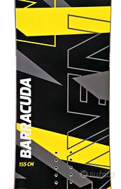 La Raven Barracuda è una tavola da snowboard All-Mountain/Freestyle, ideale per rider da principianti a intermedi che cercano versatilità e prestazioni in park e su pista, caratterizzata da una forma Twin-Tip simmetrica, profilo Camrocker (camber tra gli attacchi, rocker in punta e coda), un flex medio-rigido per stabilità e manovrabilità, nucleo in legno di pioppo e rinforzi in carbonio per pop esplosivo, e costruzione sidewall per maggiore controllo e ammortizzazione, perfetta per carving, salti e buttering.