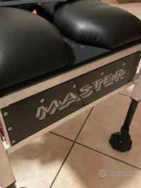 Sgabello Colmix modello Master per pesca, cassetti portaoggetti in legno, tracolla per il trasporto, gambe regolabili per ogni tipo di pendenza, massima stabilità, usato pochissimo, perfette condizioni