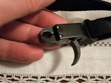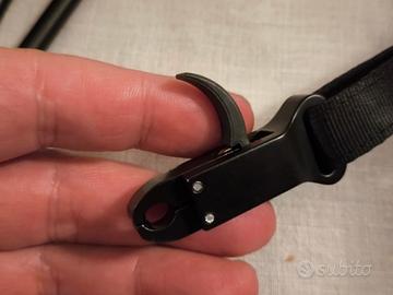 vendo sgancio come da foto, mai usato. si sistema a velcro sul polso e si scocca col dito indice che preme sul grilletto. precisissimo e regolabile sulla lunghezza delle proprio dito\mano. il carico distribuito sul polso durante la mira garantisce ottima stabilità. prezzo non trattabile.