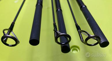 Vedo queste 3 canne, perché ho acquistato un nuovo set, sono usate ma tenute bene, sempre risposte nelle loro sacche singole a fine pescata. Le ho usate come set da calata col gommone, non sono state sforzate con grandi sacchetti in pva. Hanno qualche graffio dovuto all’utilizzo, gli anelli sono in ottimo stato. Preferisco la consegna a mano, per verificare con i propri occhi lo stato degli articoli. Possibile consegna a mano in zona Siena, Valdarno, Chianti e Firenze.