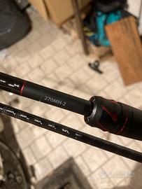 Canna da spinning shimano zodias con azione fast, lancia esche dai 7 ai 21 grammi, lunghezza 7 piedi (2,13m), non presenta nessun difetto se non un piccolo rigo causato da un amo ma nulla che comprometta la sua integrità, mi ci sono trovato benissimo ma devo sfoltire l’attrezzatura, sempre tenuta nel suo fodero originale e fornisco anche quello, preferisco ritiro a mano ma in caso posso spedire.