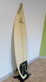 Shortboard anni 2000 Dinamo 6'6", shapata a mano da Lucio Vardabasso. Un oggetto quasi da collezione ormai pressoché impossibile da trovare in queste condizioni di conservazione.