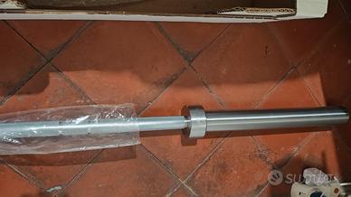 PESO20 KgLunghezza2200 mmLunghezza impugnabile1310 mmdiametro parte impugnabile28 mmAdattatori di carico (collari)Rotantidotazione4 cuscinetti a rullini, 2 boccolesistema di serraggio4 seegerdiametro adattatori di carico50 mmlunghezza adattatori di carico410 mmzigrinaturaMedia a diamante appiattitatratto centrale barraSenza zigrinaturaMarker810 mm (Powerlifting) e 910 (Weightlifting)trattamento superficiale barraHard Chromeacciaio barraSpecialeResistenza trazione barraTensile Strength PSI 132.000portata statica di caricamento300 Kgcarico massimo indicativoDeadlift: 180 Kg