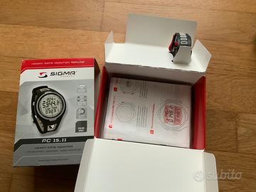 Cardiofrequenzimetro, multi funzione, confezione originale con istruzione, no fascia cardio toracica, no garanzia. Il cinturino è indebolito nel punto particolare (foto 3). Batteria nuova.