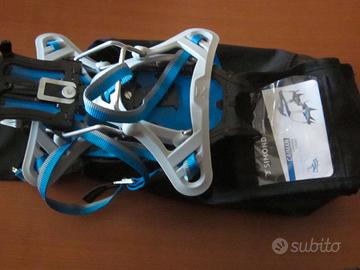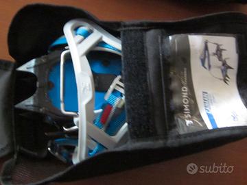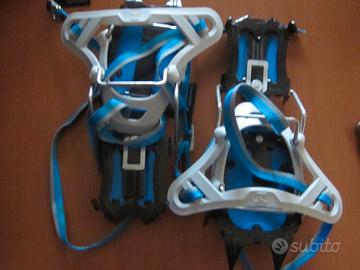 Coppia di ramponi Decathlon usati una volta hanno il sistema a fettucce si adatta perfettamente a tutti i tipi di scarponi, per una polivalenza reale. Completamente smontabile per farlo diventare automatico o semiautomatico