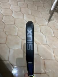 Vendo come da titolo siux fenix pro 2026 racchetta che non ha bisogno di presentazioni con 5 partite all’ attivo . Peso 355 gr manegievolissima e potentissima . Ha dei normali graffi da utilizzo essendo una racchetta opaca di accentuano di piu. Non ha crepe urti salti di vernice e quant altro. Vendo a malincuore perché non adatta al mio gioco. Euro 210 listino 350 no perditempo