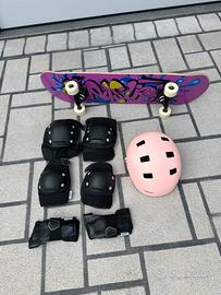 SKATEBOARD COMPLETO & SET PROTEZIONI e casco