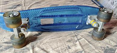 Skateboard Cruiser Retro 56cm con tavola Blu Trasparente Cuscinetti ABEC-7 - Ruote Blu LED Che Si Illuminano mentre ruotano da 59mm in PU. Usato solo per poche decine di metri. Come nuovo.