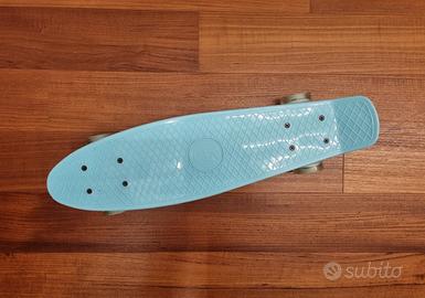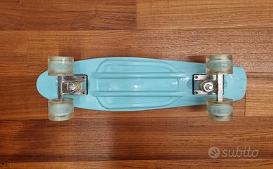 Skateboard azzurro, perfetto per divertirsi all'aperto. Le ruote si illuminano durante l'uso.
