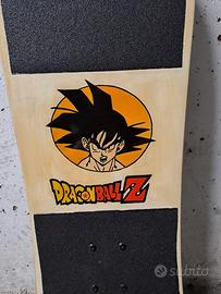 Skateboard Dragon Ball Z, unico al mondo, è stato carteggiato, disegnato e dipinto con colori a olio, poi verniciato due mani per lato, tracks cuscinetti e ruote in perfette condizioni, le misure sono 76x22 cm al centro, 1,3 cm di spessore, lo skateboard va bene per bambini, ragazzi, e adulti, o per mettere in un angolo come arredamento, anche per collezionisti .
