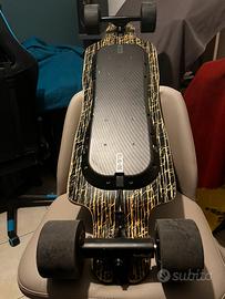 Bustin boards hybrid V3. Skateboard elettrico ibrido, se usato senza pa propulsione elettrica è come usare una tavola normale, i motori non fanno resistenza. Sistema dualomo, velocita max 45kmh e 30km di autonomia. Pari al nuovo, ruote maggiorste da 100mm 81A. Completo di telcomando originale, caricabatterie originale. Solo 378km percorsi. Pagato 1400€ comprese le tasse d’imoortazione. Vendo a metà prezzo per inutilizzo. Spedizione da valutare insieme, preferisco venderlo di persona. Mezzo unico, made in USA
