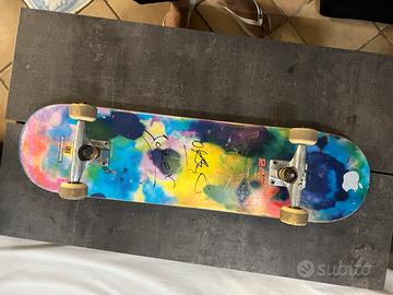vendo skateboard GLOBE con track TENSOR e ruote e cuscinetti GLOBE, lo skatebord è stato usato molto poco, come si può vedere dall’usura minima dei bordi della tavola, lo presi alle scuole medie e lo usai solo due mesetti, skateboard di qualita!!
