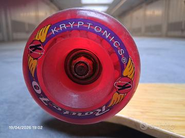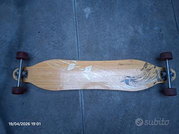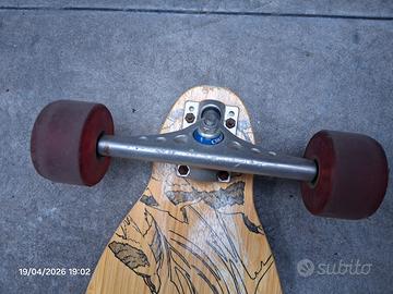Skateboard Longboard Loaded Vanguard usato in buone condizioni generali. Come si vede in foto si tratta della versione Flex 2 (150-210+ lbs / 68-95+ kg). Includo anche, oltre alle ruote già montate Kryptonics, anche le Avila da 75mm 3dm.