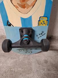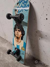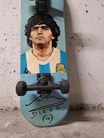 Skateboard della Decathlon, dipinto di Maradona, tutto a mano, carteggiato tutto, disegnato e dipinto con colori a olio, poi verniciato due volte entrambe i lati, misure 71 x 20, va benissimo per bambini, ragazzi e adulti, anche come arredamento. Vendo al prezzo di 70 euro.