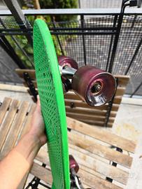 Mini skate Globe, molto solido, verde con ruote viola, lungo 60 largo 16 in appoggio frontale, perfettamente funzionante condizioni come da foto