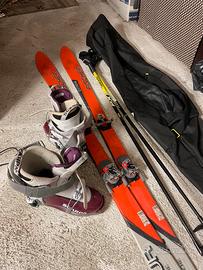 Vendo set completo per sci alpinismo, ideale per iniziare o per chi cerca un’attrezzatura affidabile a prezzo intelligente. Sci: Fischer Tour Extreme 155 cm (105-70-95 – R15) – ben tenuti Attacchi: Dynafit race Scarponi: Scarpa Blink – misura 38,5/39 – 4 anni, in ottime condizioni usati 5 volte Pelli di foca: Montura Bora usati 5 volte Racchette telescopiche usate 5 volte Sacca porta sci Ideale per donna/ragazzo o persona leggera (sci 155 cm).