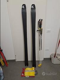 set completo da sci alpinismo SKI TRAB ALTA VIA nuovi usati una sola volta. completi di pelli su misura nuove con bastoncini in carbonio lunghezza 130 in ottimo stato. consegnarla a mano su nord Italia tutte le località comprese tra Bressanone e Torino lungo la A4( Trento, Verona, Vicenza, Brescia, Bergamo, Milano, Novara)