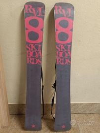 Skiboard da 105 cm, da non confondere con minisci e skiblade, più larghi e con struttura in legno...full camber, perfetti per carving, park e fuoripista.